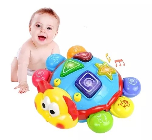 Se mueve al son de la música, fomentando el gateo y los primeros pasos de los niños. Función de preguntas para reforzar los conocimientos y el aprendizaje. En idioma español e Inglés.
